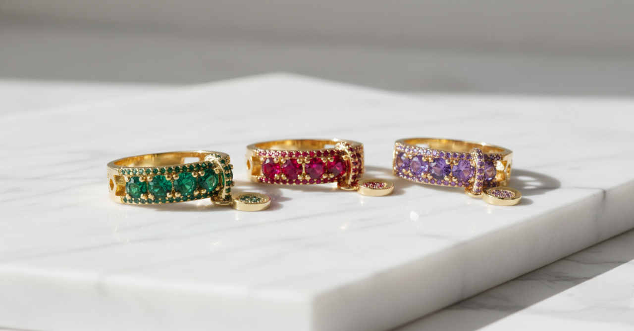Vintage-inspired crystal rings in radiant hues, crafted to shine with bold sophistication.